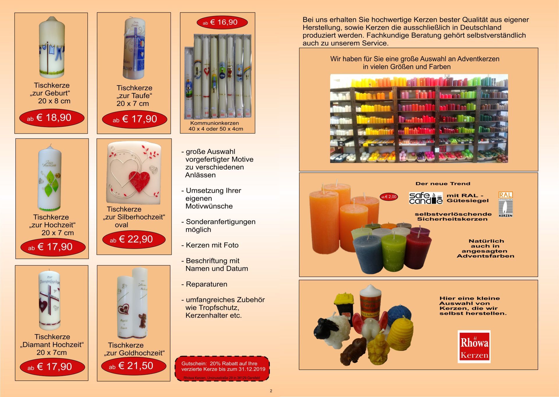 Willkommen bei Rhöwa Kerzen, der einzigen Kerzenmanufaktur im Landkreis Fulda.